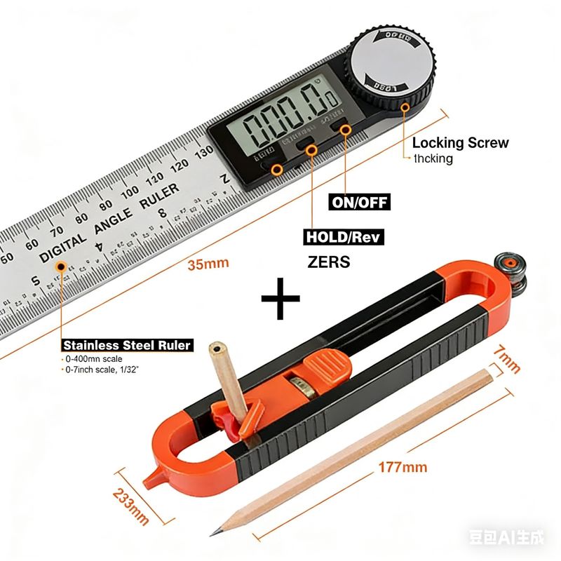 *Régua de ângulo digital de 200mm, medidor de ângulo 2 em 1, tesouro de medição precisa do mestre marceneiro!